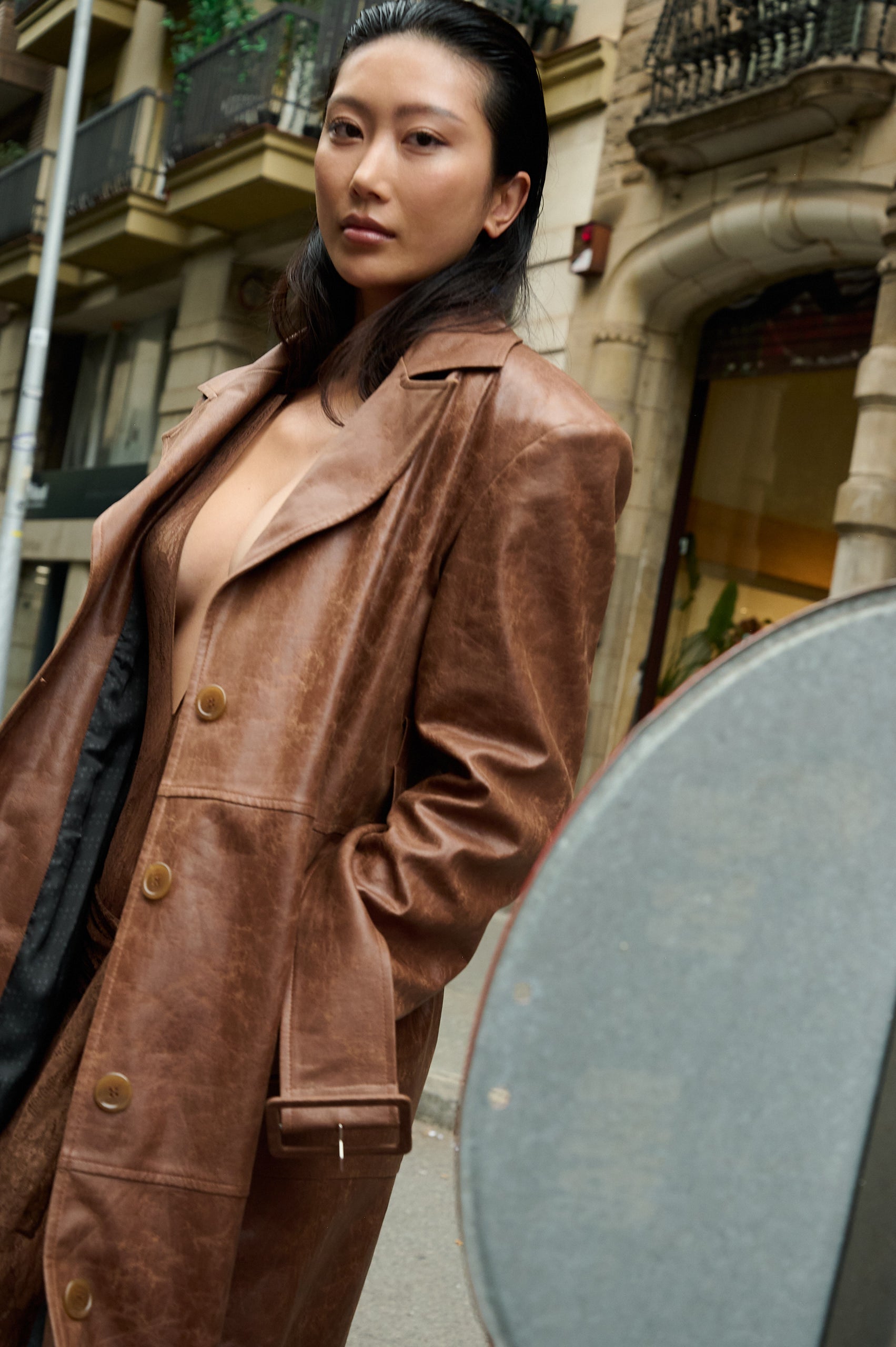 Brown leather coat