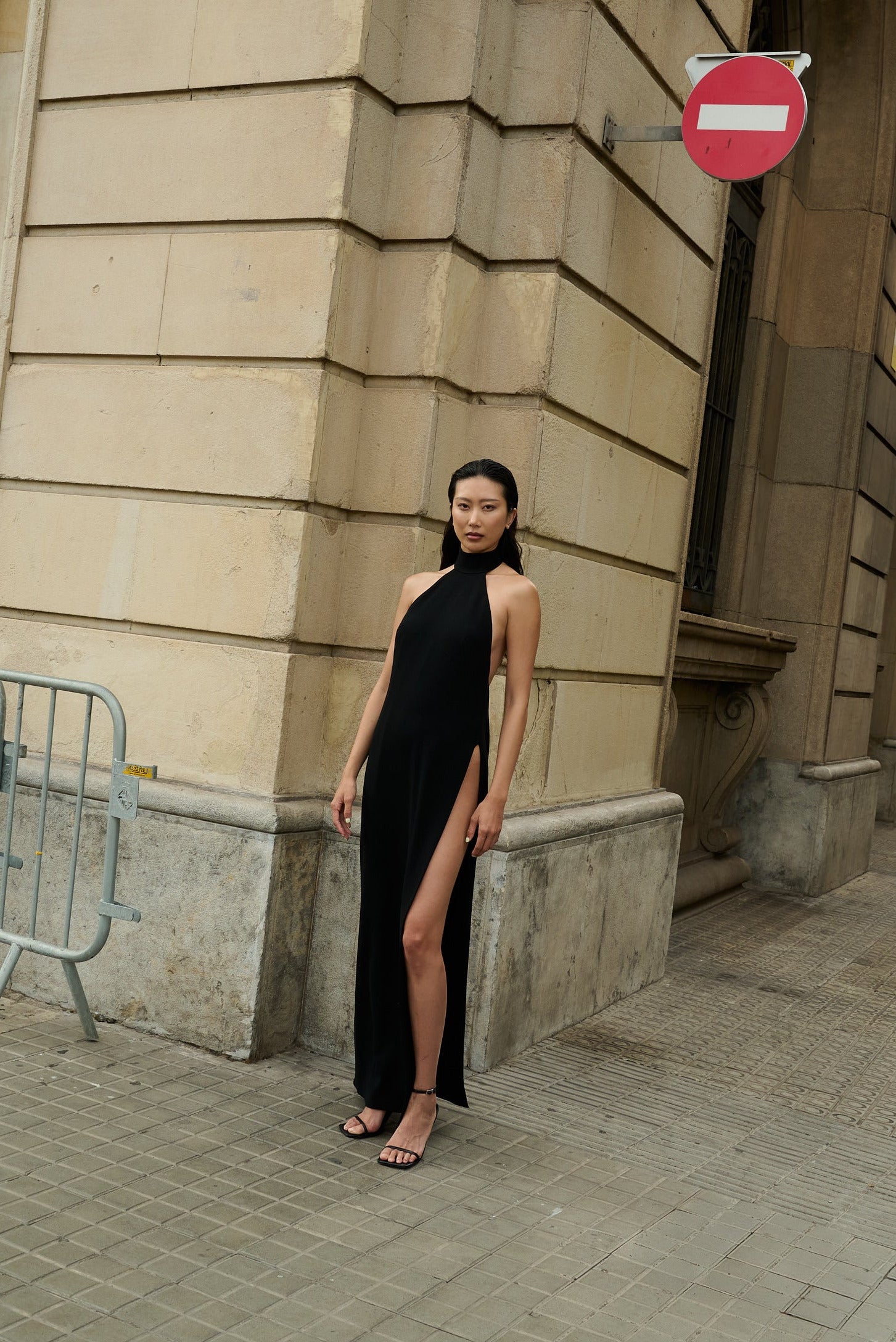 Black dress with a deep slit