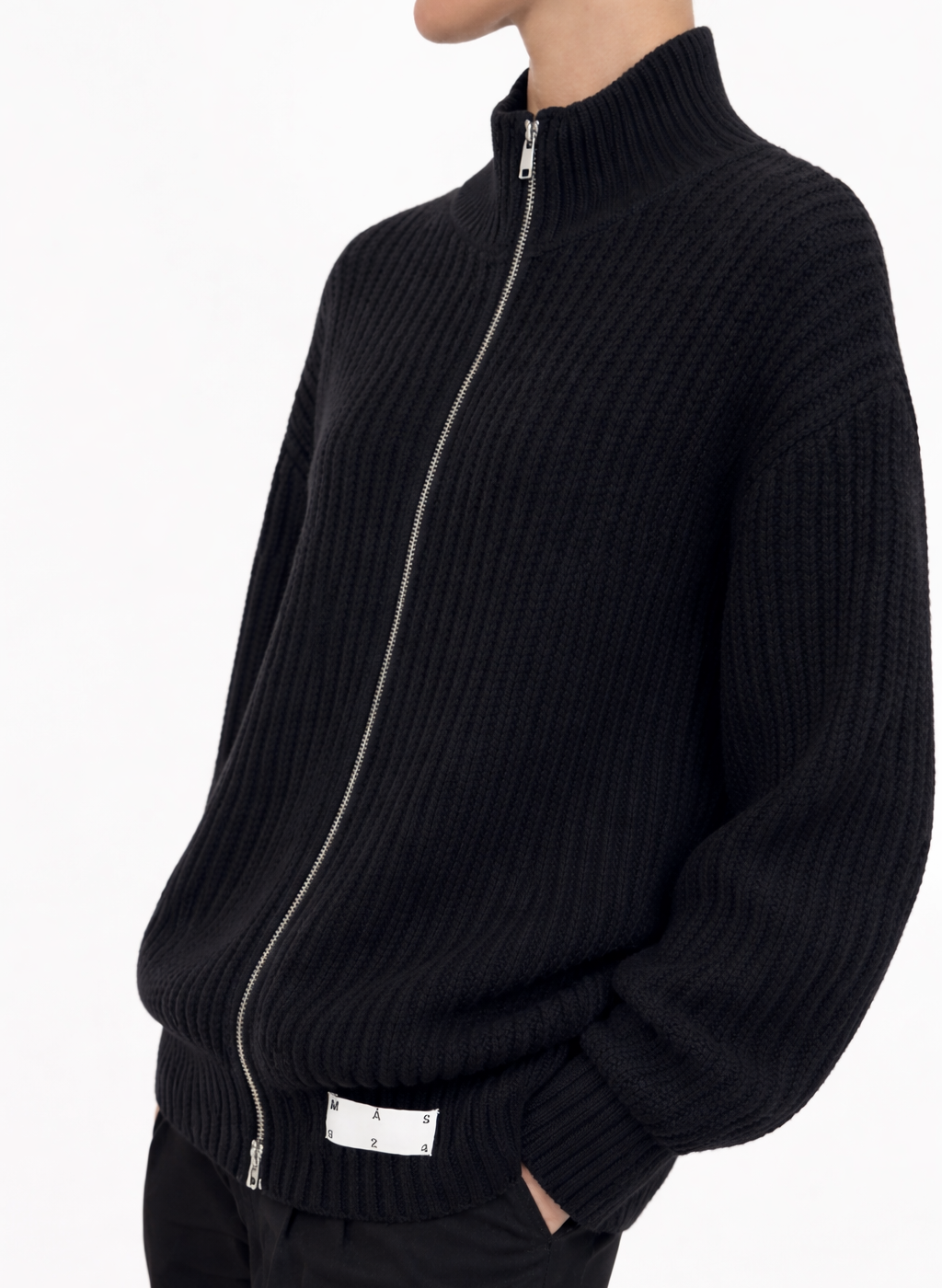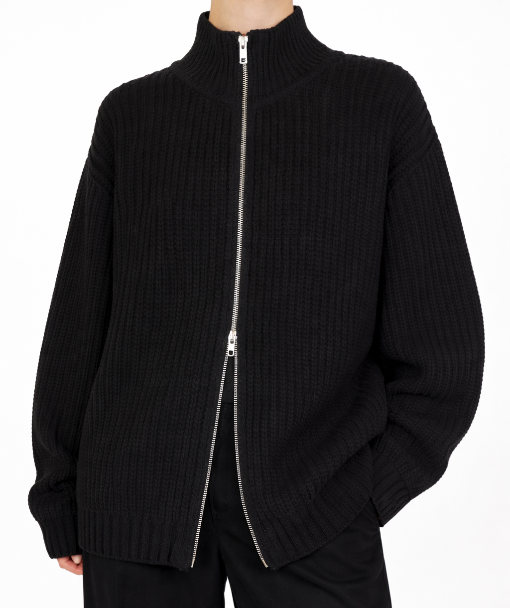 Black merino wool zip sweater