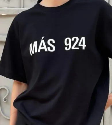 Juodos spalvos unisex marškinėliai su priekyje esančiu MÁS 924 logotipu.