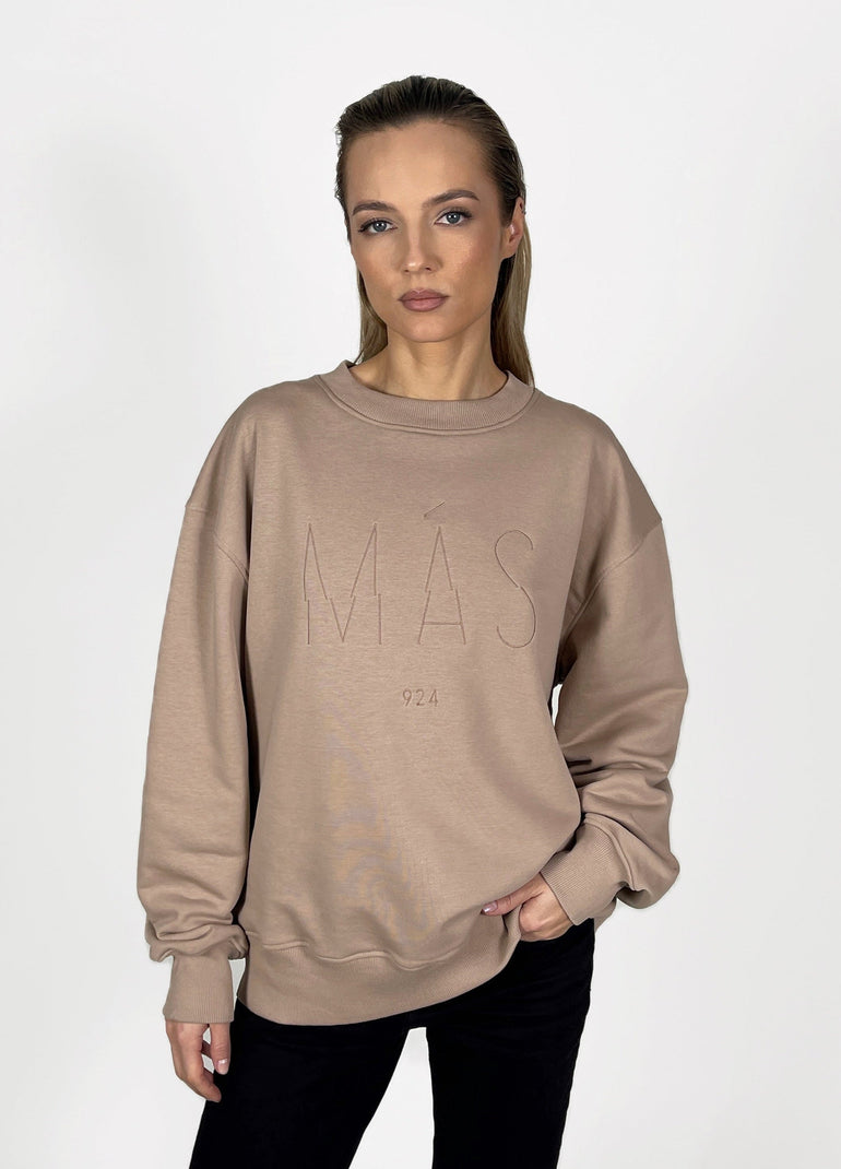 Unisex nude spalvos džemperis su apvalia iškirpte ir siuvinėtu logotipu ant krūtinės.