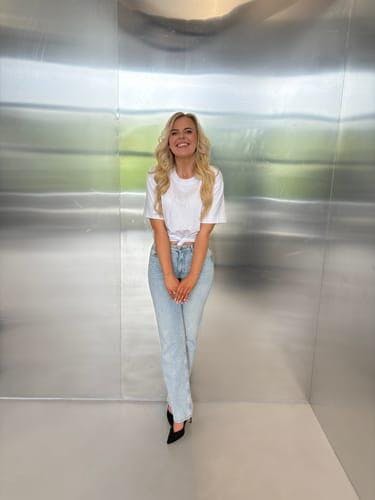 Balti marškinėliai su kristalais