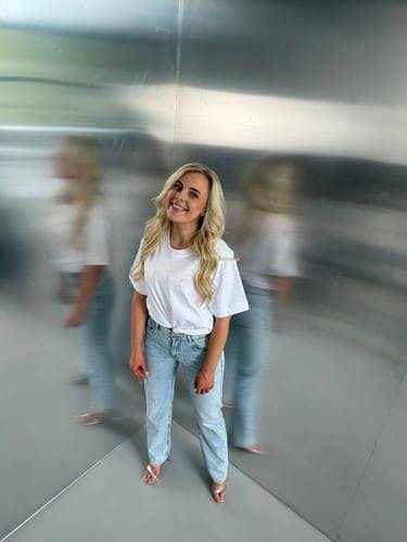 Priežiūra: skalbti ne didesnėje kaip 30°C temperatūroje, marškinėlius išvertus į blogąją pusę.
