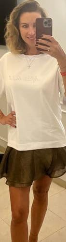 MÁS 924 balti marškinėliai su kristalų motyvu priekyje.