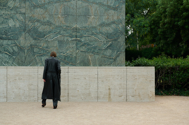MÁS924 black faux leather coat.